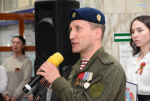 Далее со словами благодарности выступил выпускник Бурятского государственного университета имени Доржи Банзарова, участник СВО, Харитонов Олег Анатольевич. Он поблагодарил всех ветеранов, пожелал крепкого здоровья, всегда быть впереди, иметь активную жизненную позицию. Также он пожелал студентам быть настоящими в жизни, учёбе, спорте.