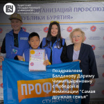 Поздравляем Председателя первичной профсоюзной организации студентов БГУ Балданову Дариму Чимитцыреновну и её замечательную семью с Победой в номинации "Самая дружная семья" Республиканского конкурса "Папа, мама, я - профсоюзная семья".