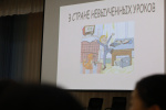 На этом мероприятии иностранные студенты узнали о Дне преподавателя высшей школы, о том, как празднуют этот день в нашей стране, посмотрели советский мультфильм «В стране невыученных уроков», а также приняли участие в тематической игре, по итогам которой были награждены сладкими призами.