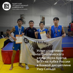 Воспитанники спортивно-патриотического клуба "Бухэ Бургэд БГУ» на Кубке России Ушу-Саньда в г. Москва показали хороший уровень подготовки, заняв призовые места: одно первое, три бронзовых. Золотую медаль в весе 48 кг завоевал студент института физической культуры, спорта и туризма Монгуш Олчей-Кежик. Бронзовыми медалистами стали Монге Сергей вес 56 кг студент института физической культуры, спорта и туризма, Нимаев Олег вес 65 кг студент института педагогики и психологии, Тукуренова Ульяна Робертовна вес 60 кг мастер спорта международного класса, старший преподаватель кафедры национальных видов спорта.
