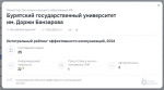 БГУ получил Сертификат "Лидера рейтинга", который подтверждает, что Бурятский государственный университет имени Доржи Банзарова является лидером "Интегрального рейтинга эффективности коммуникаций в 2024 году" Республики Бурятия. За 2023 год БГУ также становился Лидером рейтинга.