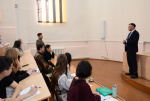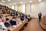 В рамках Всероссийской акции, организованной Российским обществом "Знание", в Бурятском госуниверситете 19 марта 2025 г. перед студентами 1 курса института истории и филологии выступил ректор, председатель Бурятского регионального отделения РОЗ Алдар Валерьевич Дамдинов.