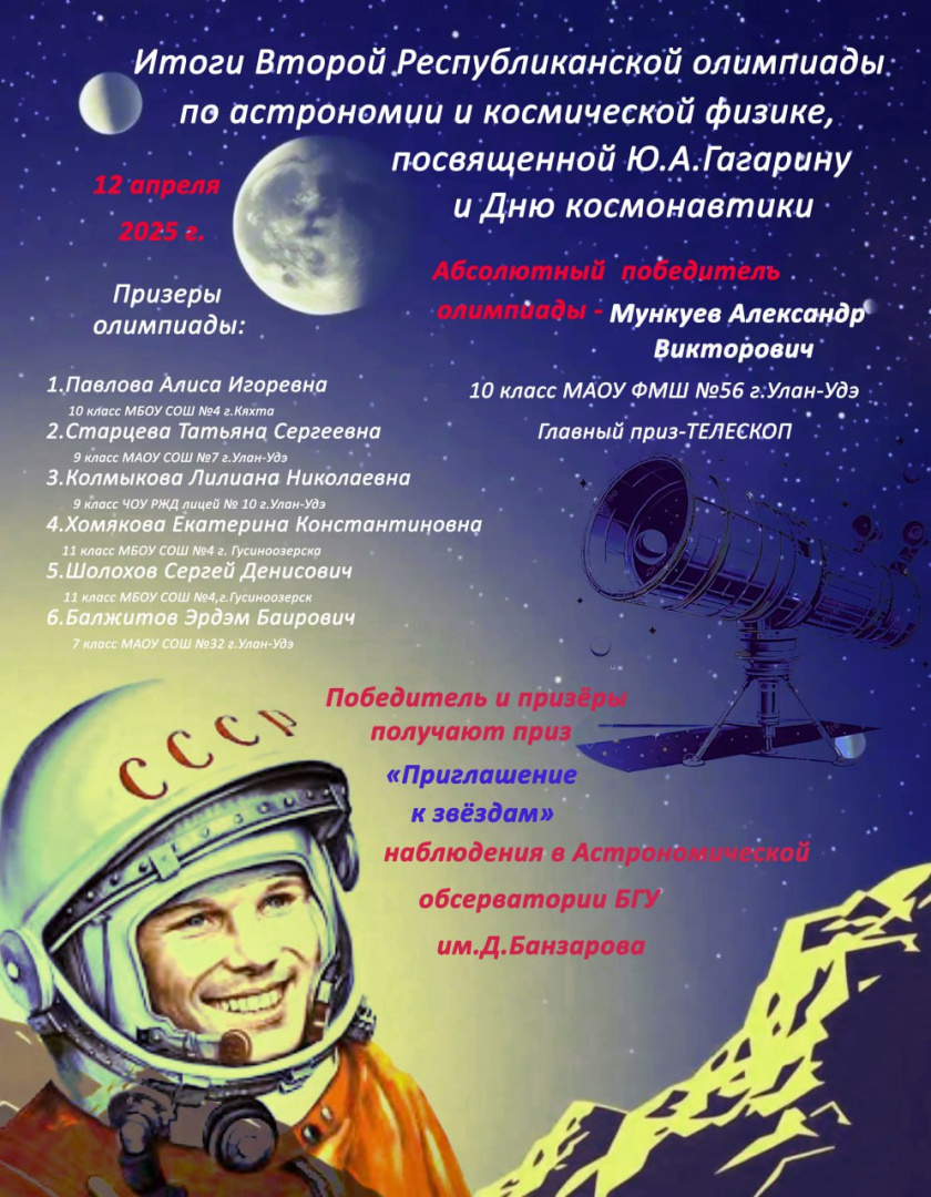 Вторая Республиканская олимпиада по астрономии и космической физике посвященная Ю.А. Гагарину и Дню Космонавтики.