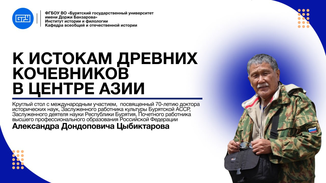 18 апреля 2025 г. в стенах Института истории и филологии БГУ состоялся круглый стол с международным участием, посвященный 70-летию доктора исторических наук, Заслуженного работника культуры Бурятской АССР, Заслуженного деятеля науки Республики Бурятия, Почетного работника высшего профессионального образования Российской Федерации Александра Дондоповича Цыбиктарова.