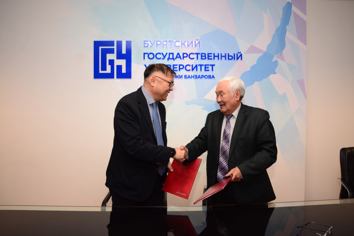 Соглашение подписали: ректор БГУ А.В. Дамдинов и директор ИОЭБ СО РАН Л.Л. Убугунов.