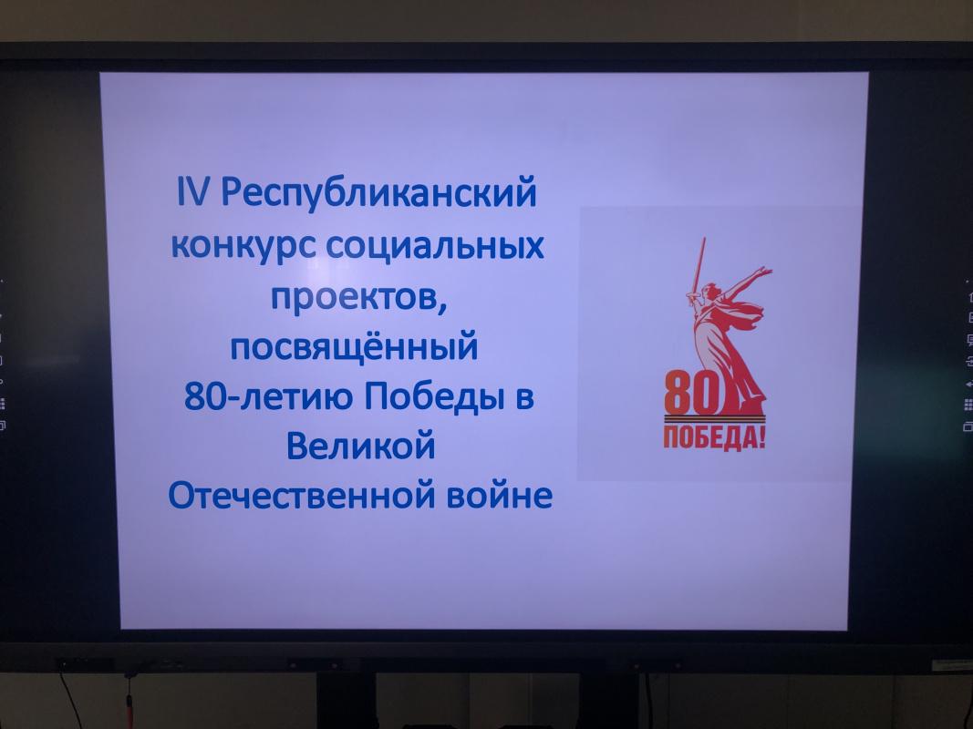 В начале апреля 2025 года было объявлено о проведении IV Республиканского конкурса социальных проектов среди школьников и студентов образовательных организаций СПО, посвященного 80-летию Победы в Великой отечественной войне.