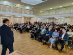 Министр образования и науки Республики Бурятия Поздняков Валерий Анатольевич выступил с докладом о кадровом обеспечении образовательных организаций республики, привел статистику о количестве педагогических работников и управленческих кадров в дошкольных, общеобразовательных и профессиональных образовательных организациях, об уровне средней заработной платы воспитателей и учителей. Отдельно министр рассказал участникам Дня карьеры о реализации программы «Земский учитель», благодаря которой выпускники Университета, прошедшие конкурсный отбор, будут работать учителями, смогут получить единовременную выплату в размере 2 млн. рублей.