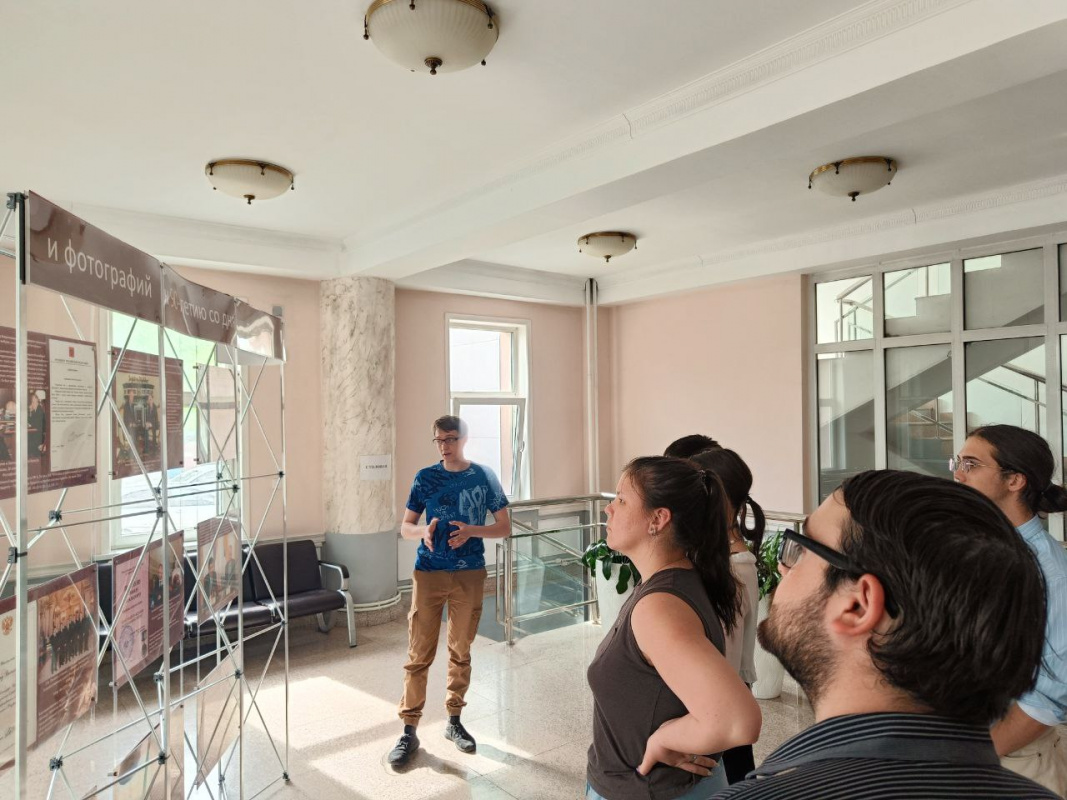 27 мая 2025 г. в рамках практики студенты 3 курса Института истории и филологии София Хохлова и Роман Вербенко совершили увлекательную экскурсию по выставке Государственного архива Республики Бурятии "Леонид Васильевич Потапов. Президент Ресупблики Бурятия. Выставка архивных документови фотографий к 90-летию со дня рождения" для студентов СПК "Я горжусь", Студенческого научного общества ИИФ и Восточного института.