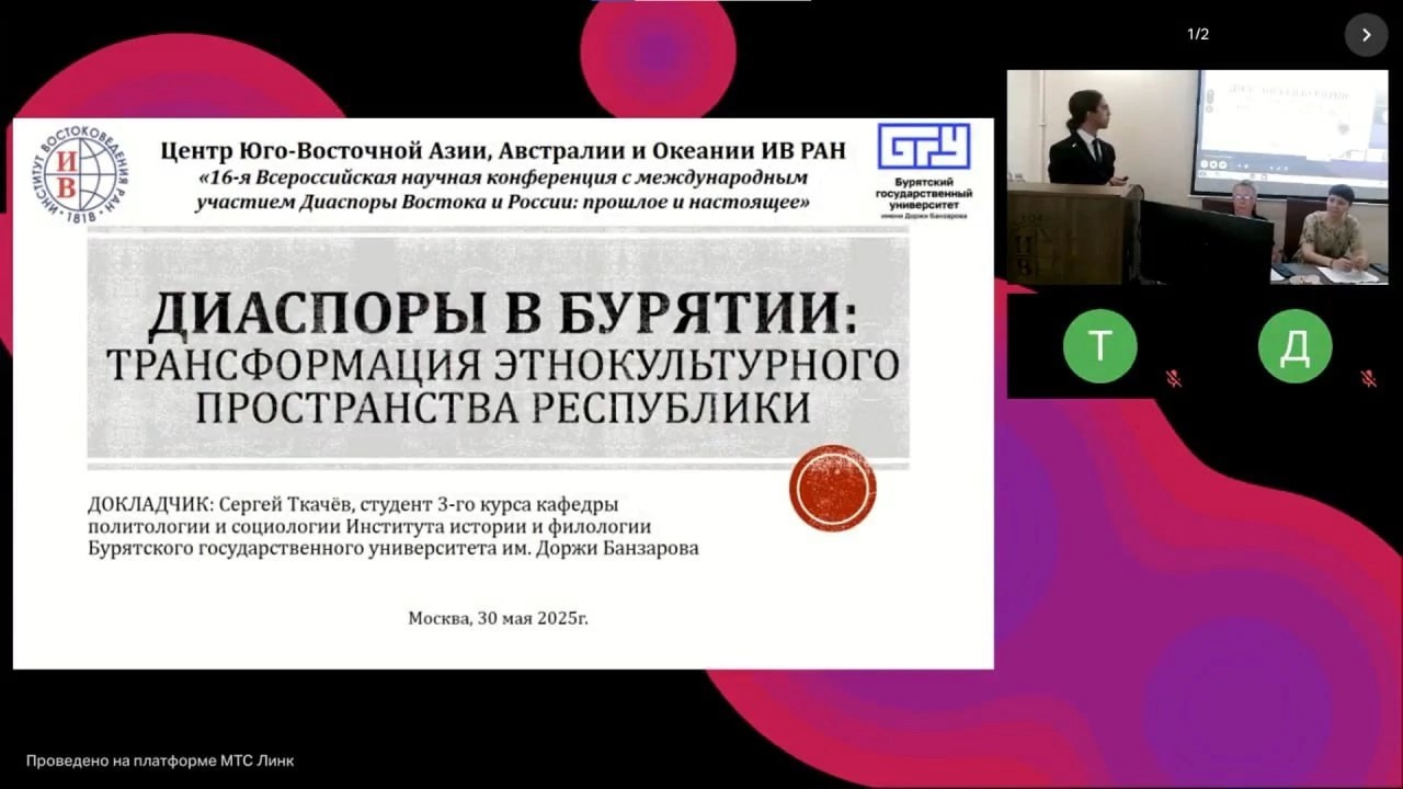 В ней принял участие Сергей Ткачёв, студент гр. 03220 направления «Политология» с докладом на тему: "Диаспоры в Бурятии: трансформация этнокультурной идентичности".