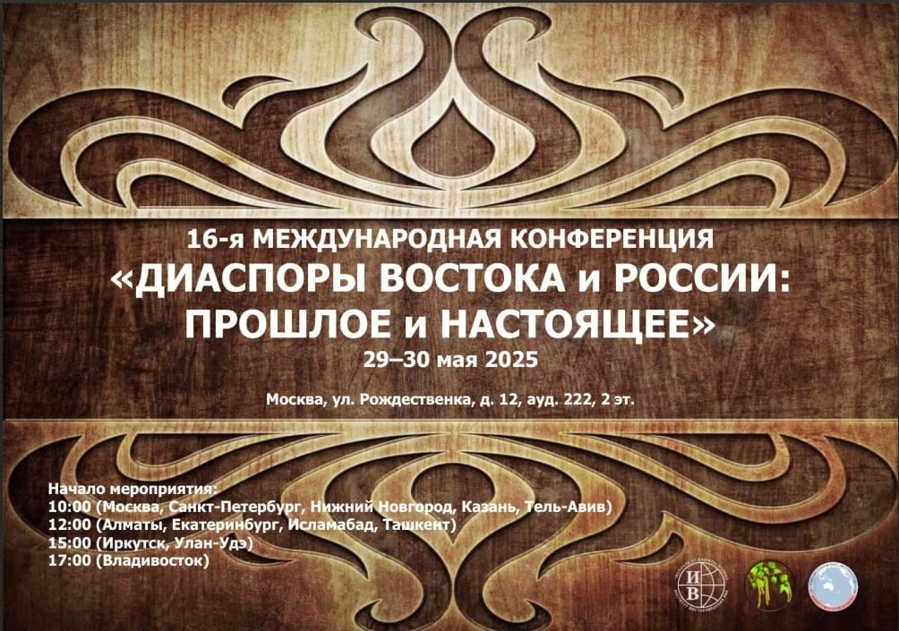 29–30 мая 2025 года в Москве состоялась XVI Международная конференция «Диаспоры Востока и России: прошлое и настоящее», прошедшая в Институте востоковедения Российской академии наук.