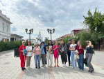 Студентка 4 курса кафедры перевода и межкультурной коммуникации Тудупова Алтана провела для членов Всероссийского общества слепых уникальную тифлоэкскурсию по улице Соборная г. Улан-Удэ. В отличие от обычных экскурсий, этот формат предполагает детальное словесное описание объектов, включая их форму, цвет, текстуру и другие характеристики, позволяющие незрячим людям в полной мере представить архитектурные особенности зданий.