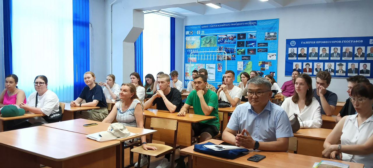 В рамках регионоведческой практики по Байкальскому региону с 24 по 26 июня 2025 г. студенты-географы, во главе с Балиновой Т.А, доцентом кафедры социально-экономической географии, ассистентом Марковой Ю.С. кафедры картографии и геоинформатики Пермского государственного национального исследовательский университета посетили БГУ, где состоялось встреча с профессорско-преподавательским составом кафедры географии и геоэкологии ИЕН. На встрече со студентами зав.кафедрой Урбанова Ч.Б. рассказала о развитии БГУ и кафедры географии и геоэкологии. Академик РАН, директор БИП СО РАН, вице-президент РГО Гармаев Е.Ж. представил доклад академического сотрудничества кафедры и уникальности территории Байкальского региона. Также на встрече обсуждался вопрос о дальнейшем сотрудничестве, о возможностях проведения совместных полевых практик на территории Пермского края и Бурятии.