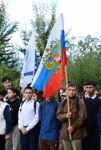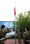 Далее прошла торжественная церемония поднятия флага Российской Федерации. Право поднять государственный флаг было предоставлено лучшим студентам спортивно-патриотического клуба «Бухэ Бургэд», победителям республиканской военно-патриотической игры «Зарница» Иванову Александру и Смородникову Даниилу (Институт физической культуры, спорта и туризма), а также курсанту межвузовского Военно-учебного центра, победителю Всероссийской военно-инженерной универсиады, участнику Парада Победы Галсанову Александру (Институт естественных наук).