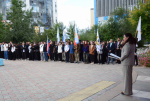 Перед участниками митинга выступил ректор Бурятского государственного университета имени Доржи Банзарова - Алдар Валерьевич Дамдинов. Он подробно рассказал об истории этой великой даты, о том, что Днем окончания Второй мировой войны и Днем Победы над милитаристской Японией следует считать 3 сентября 1945 года. Алдар Валерьевич поведал о подвигах наших земляков, преподавателей и студентов, которые принимали участие в боях на Восточном фронте. В их числе, ректор БГПИ имени Доржи Банзарова, Иван Александрович Батудаев, его памятник и мемориальная доска установлены возле Главного корпуса БГУ.