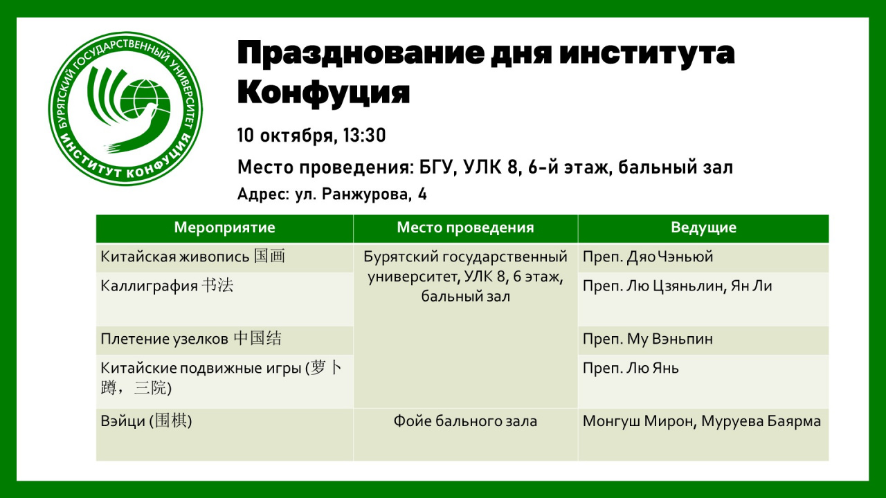 Институт Конфуция БГУ приглашает вас отпраздновать «Всемирный день институтов Конфуция» вместе с нами и погрузиться в удивительный мир китайской культуры.