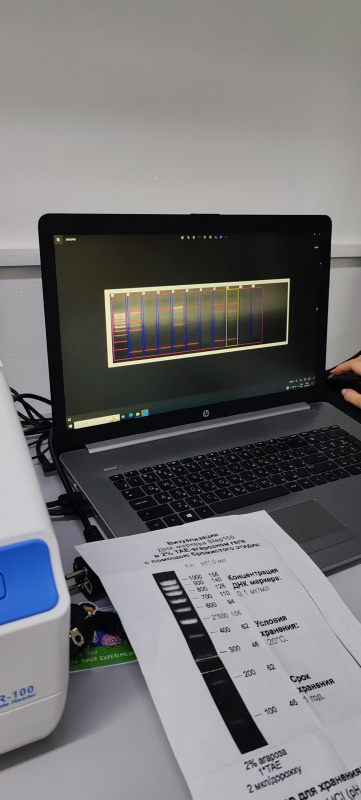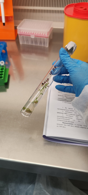 Большой блок работы был посвящен молекулярно-генетическим методам исследования растений. Выделение РНК из in vitro растений картофеля с помощью набора реагентов для выделения ДНК/РНК фитопатогенов «ЦитоСорб/CytoSorb» (предварительная подготовка, лизис, сорбция и осаждение НК, промывка, элюция). Проверка качества выделенной НК на спектрофотометре УФ-видимого диапазона DN-100 Miulab. Проверка РНК из in vitro растений картофеля на Potato Virus M (PVM) и Potato Leafroll virus (PLRV) методом ОТ-ПЦР-РВ с помощью набора Синтол (подготовка реакционных смесей, запуск Real Time амплификатора, интерпретация результатов), проведение электрофореза нуклеиновых кислот в агарозном геле.
