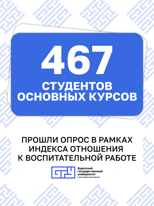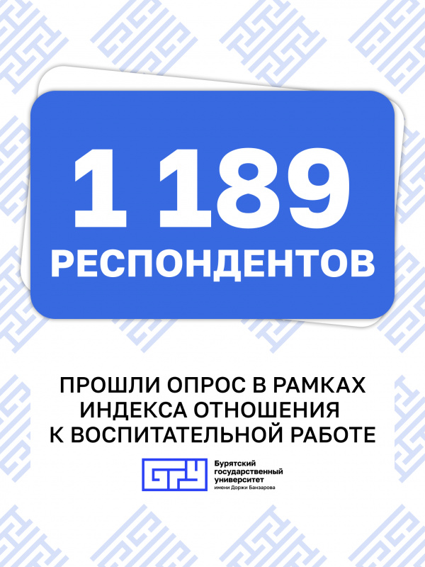 Хотим выразить искреннюю благодарность студентам и сотрудникам Бурятского государственного университета имени Доржи Банзарова за активное участие! Всего в опросе приняло участие 1189 студентов и сотрудников университета.