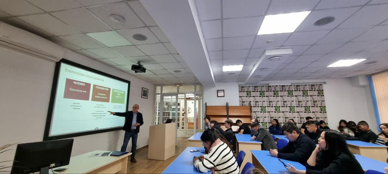В рамках лекции обсуждались подходы буддизма к вопросам развития, взаимосвязь благополучия человека, укрепления социальных связей и заботы о природе.