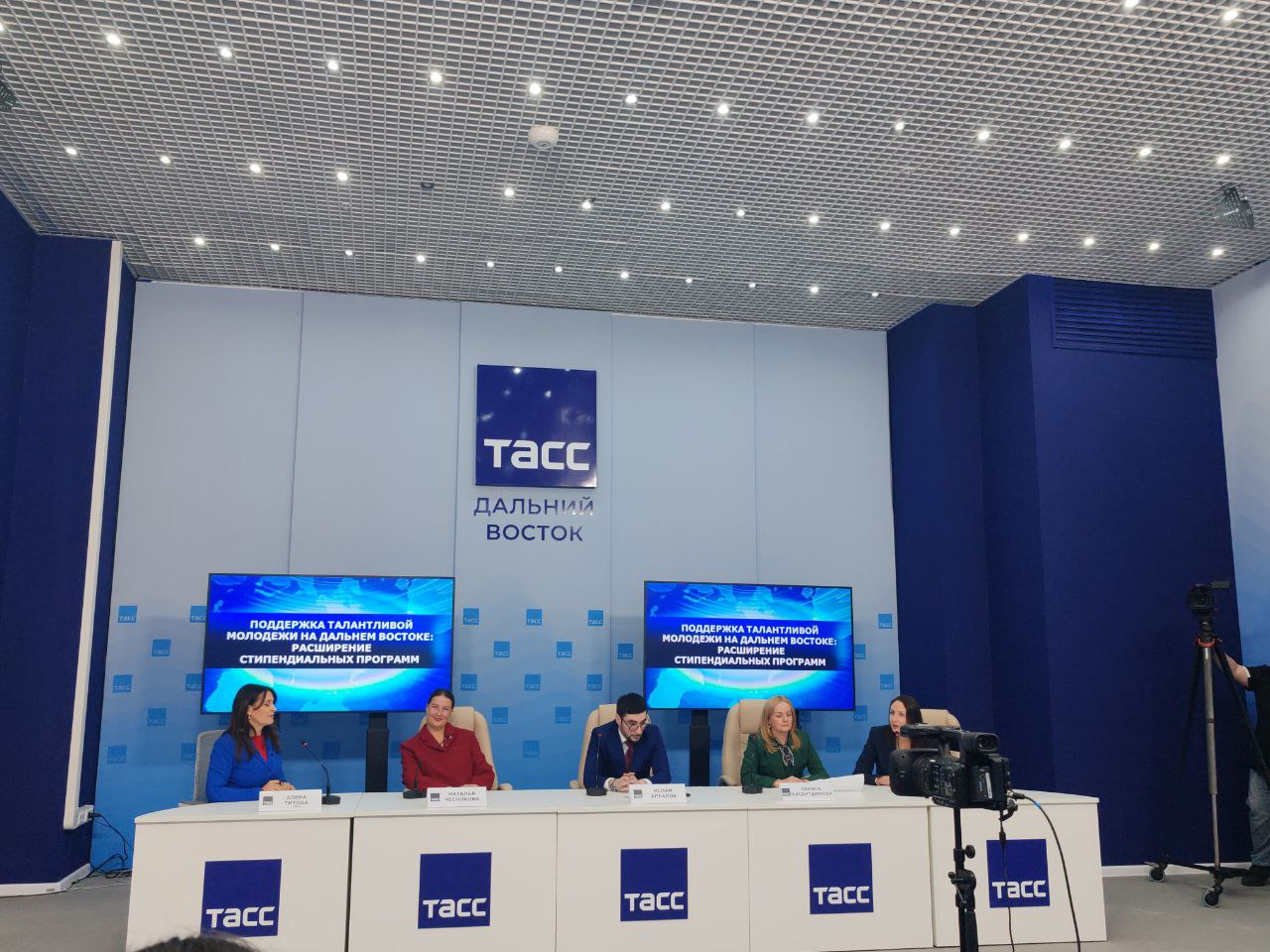 4 декабря 2025 года в Региональном информационном центре "ТАСС Дальний Восток" (г. Владивосток) состоялась пресс-конференция, посвященная презентации новых и расширению существующих стипендиальных программ Министерства науки и высшего образования Российской Федерации для студентов Дальнего Востока. От Бурятского государственного университета в пресс-конференции приняла участие проректор по молодежной политике и воспитательной деятельности Лагойда Наталья Григорьевна.
