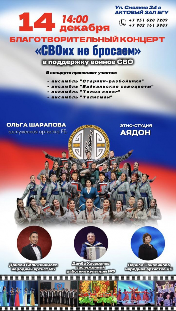 Приглашаем вас на благотворительный концерт «СВОих не бросаем» в поддержку наших земляков — бурятских бойцов, участвующих в СВО.