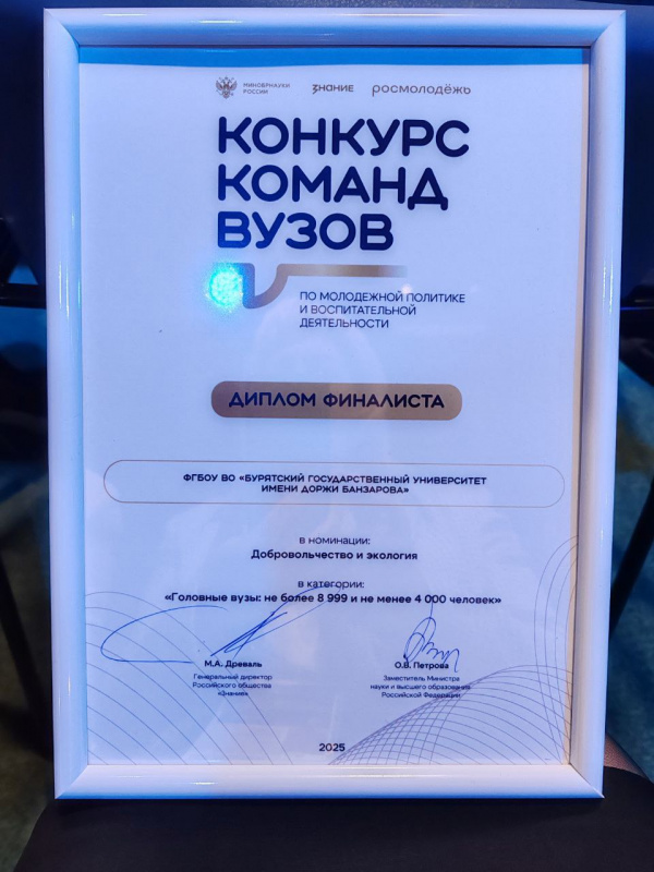 Бурятский государственный университет имени Доржи Банзарова подтвердил статус одного из лидеров в области молодёжной политики, став финалистом Всероссийского конкурса команд вузов. Успех был достигнут в ключевой номинации «Добровольчество и экология».