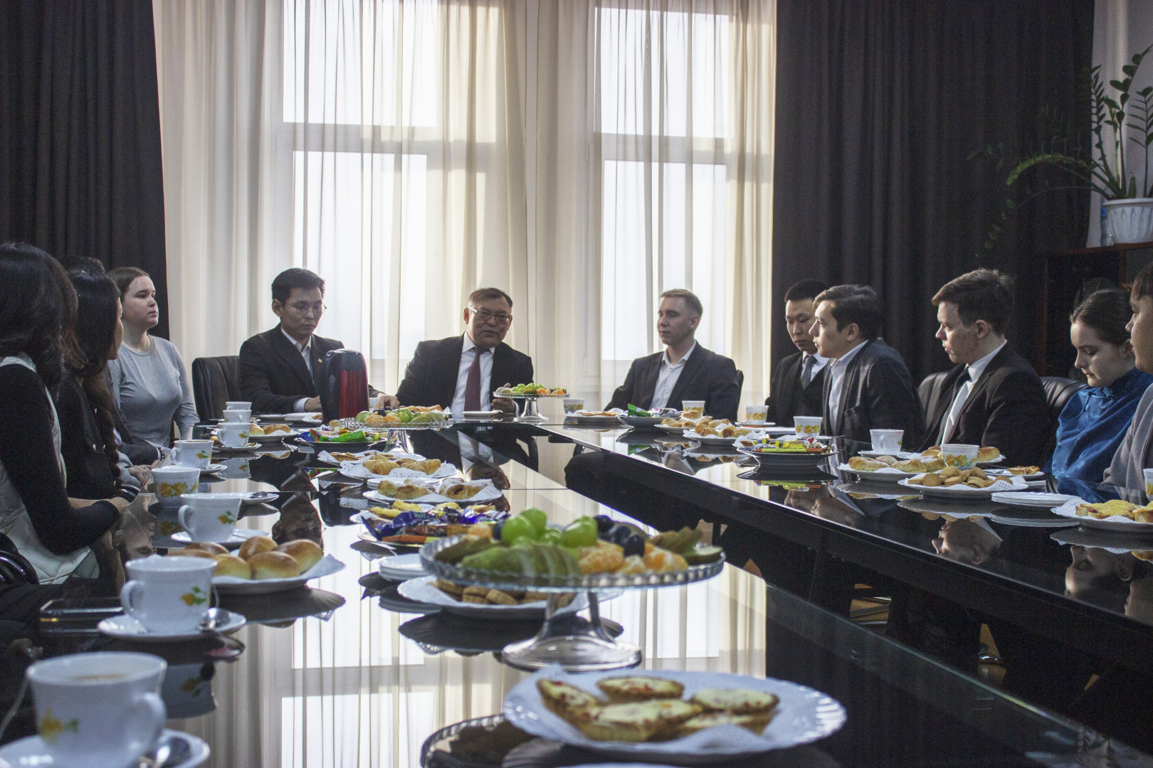 Накануне ректор Алдар Валерьевич Дамдинов встретился со студенческим активом БГУ и отличниками учебы восьми институтов и колледжа. Традиционный «Чай с ректором», который ежегодно проводится накануне праздника, состоялся в дружеской теплой атмосфере, а сам ректор назвал общение с ребятами диалогом на равных.