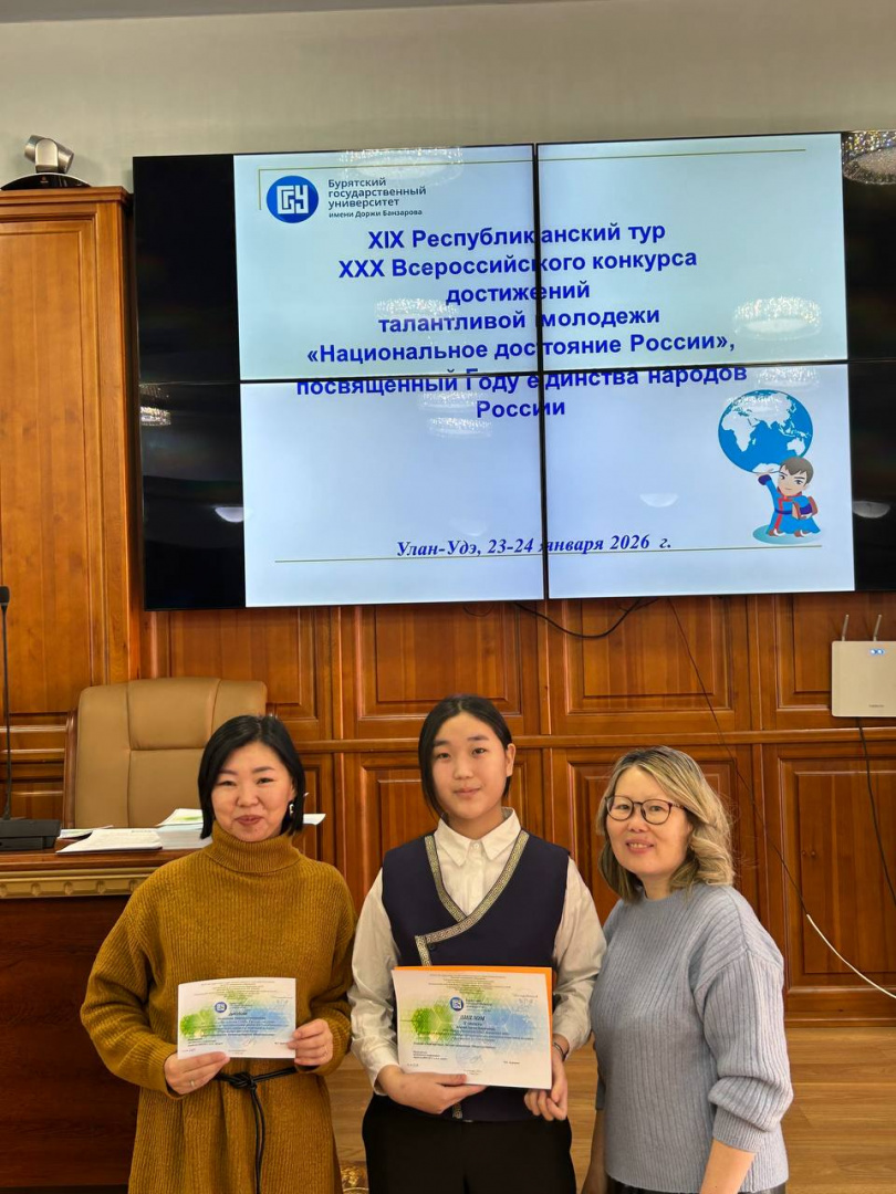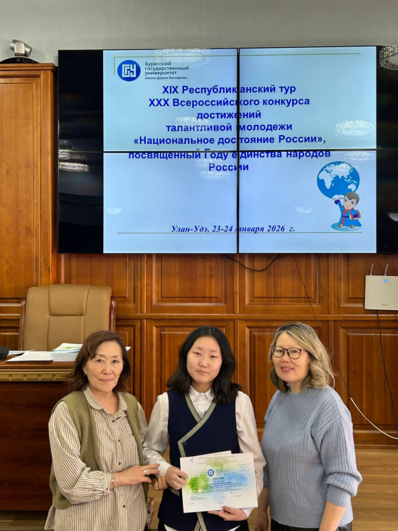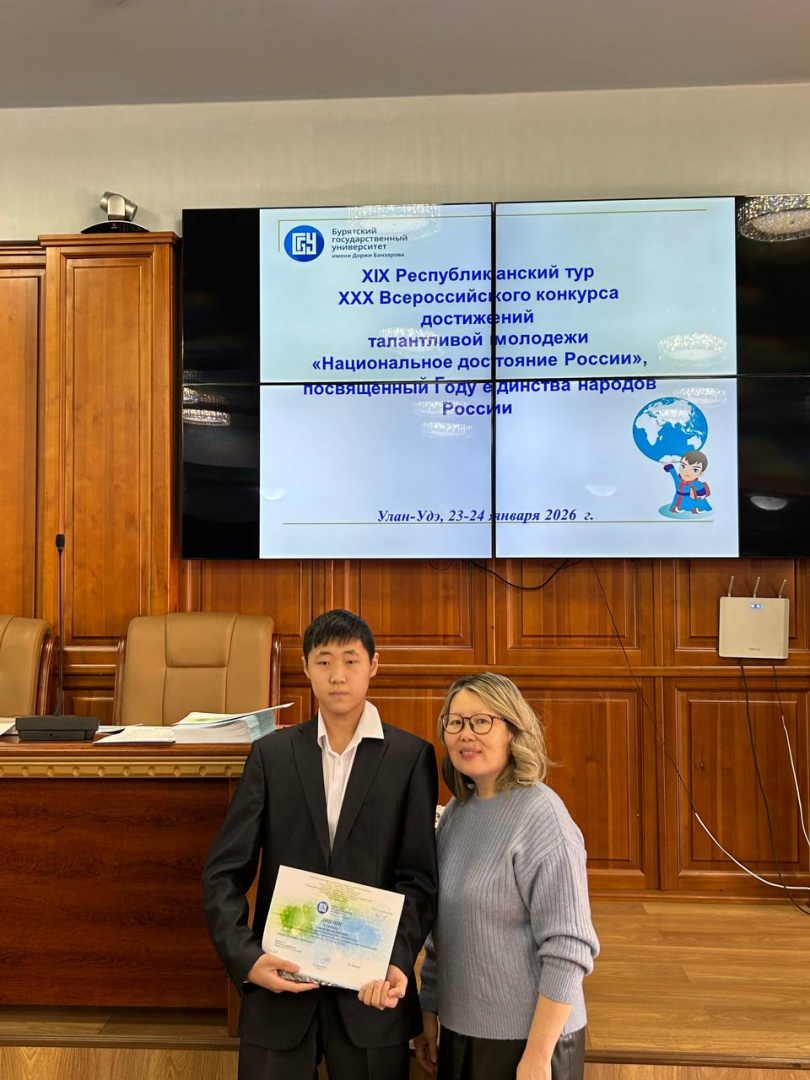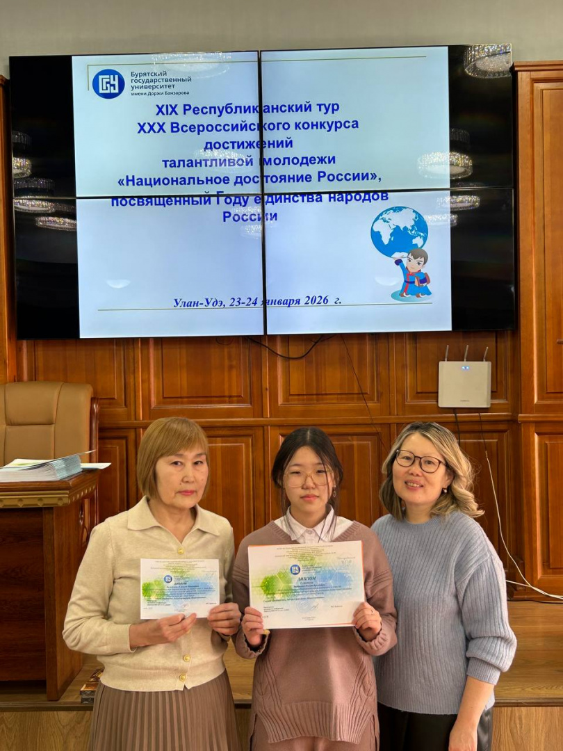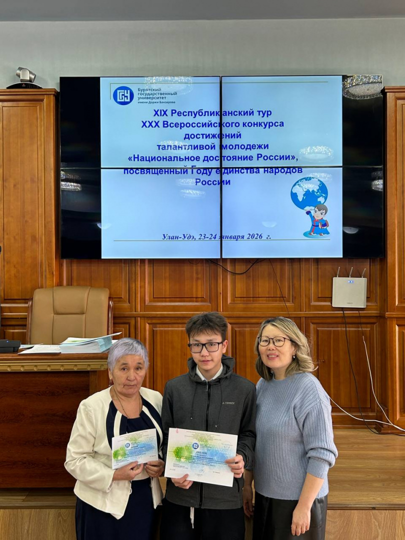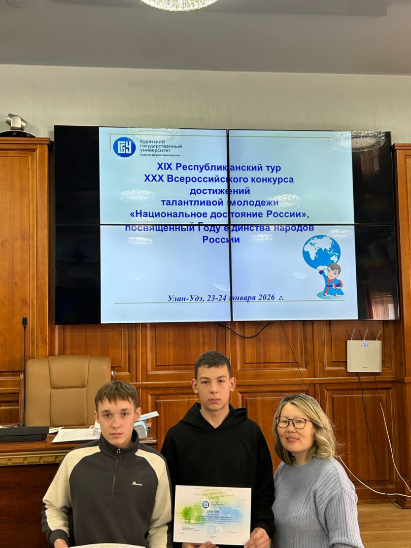 23-24 января 2026 года на базе Бурятского государственного университета имени Доржи Банзарова состоялся для школьников ставший традиционным XIX Республиканский тур XXX Всероссийского конкурса достижений талантливой молодежи «Национальное достояние России», посвященный Году единства народов России.