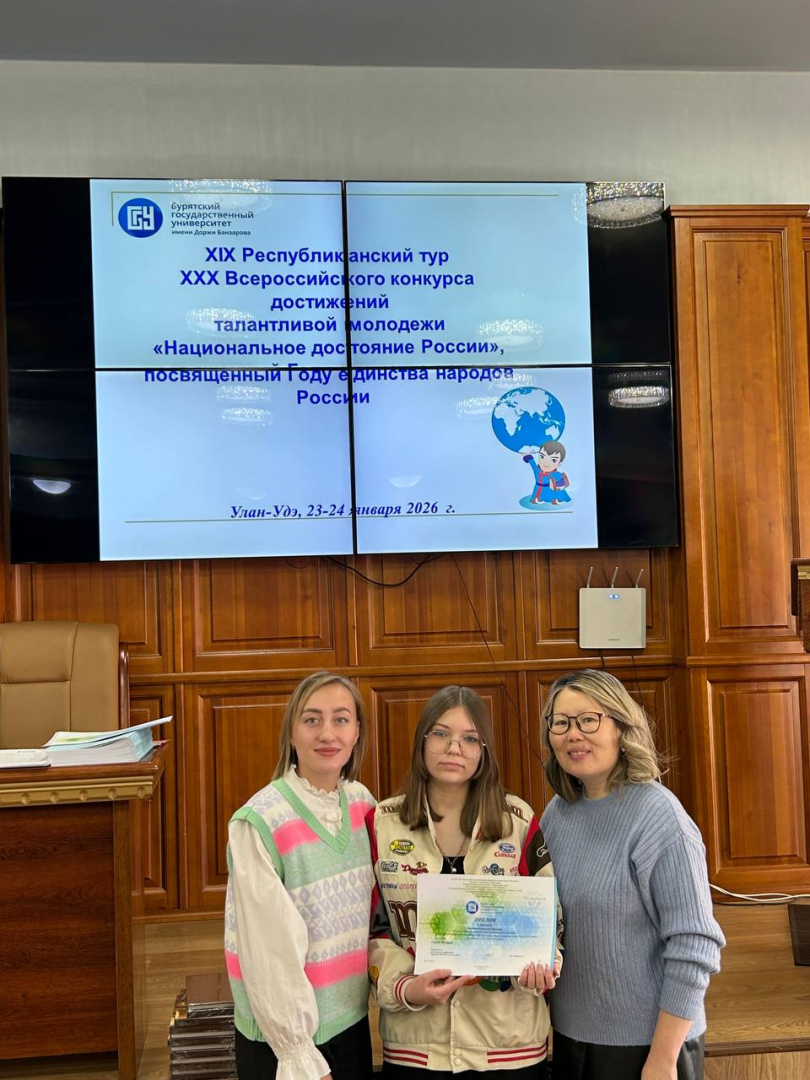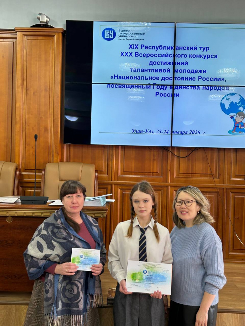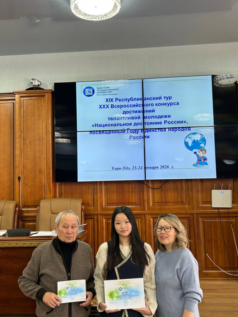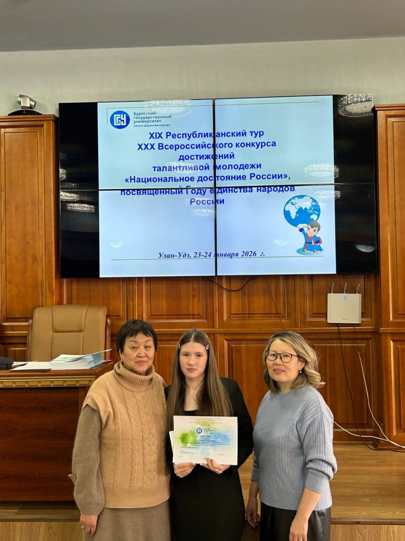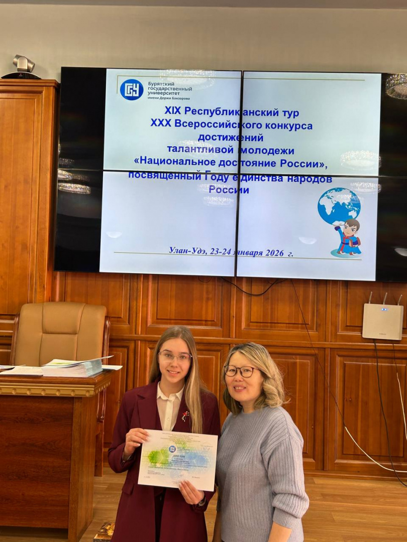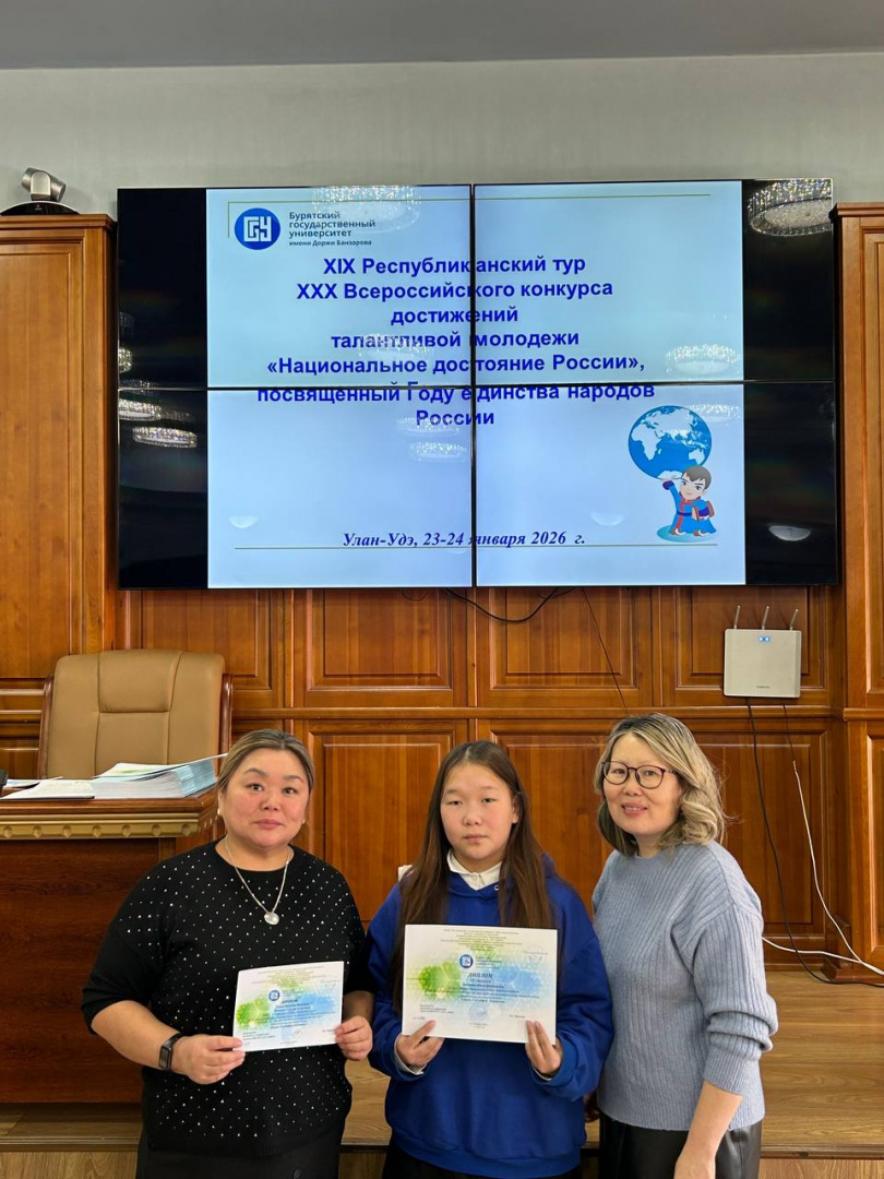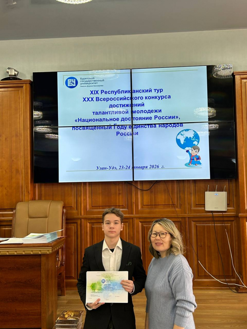 23-24 января 2026 года на базе Бурятского государственного университета имени Доржи Банзарова состоялся для школьников ставший традиционным XIX Республиканский тур XXX Всероссийского конкурса достижений талантливой молодежи «Национальное достояние России», посвященный Году единства народов России.