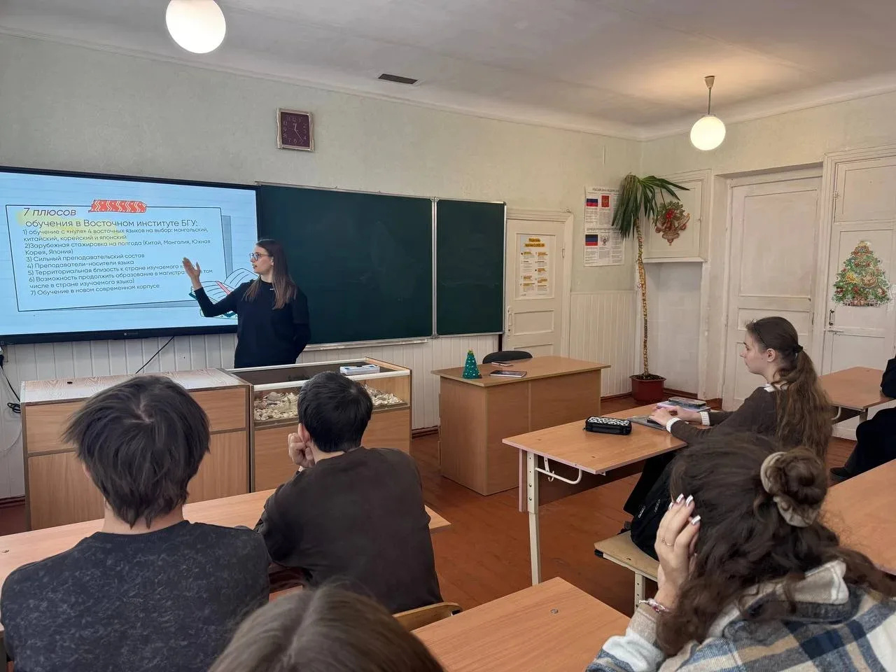 Встреча стала для ребят неформальным и очень искренним диалогом о высшем образовании. Вместо стандартной презентации Влада поделилась личным опытом адаптации к студенческой жизни в далёкой и прекрасной Бурятии, рассказала об особенностях учебы на востоковеда, о сильном преподавательском составе и уникальной атмосфере БГУ.