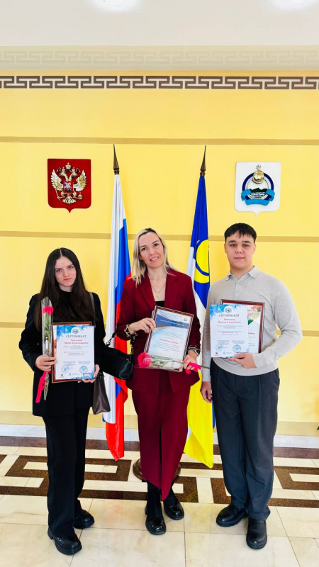 Сегодня, 13 февраля 2026 года, студенты Института права и экономики – Вашагин Вадим и Унагаева Арина, совместно с заместителем директора по научной работе, к.ю.н., доцентом кафедры УППК – Гулиной Еленой Витальевной, приняли участие в работе итогового совещания Уполномоченного по правам человека в Республике Бурятия за 2025 год. В рамках совещания дипломами и благодарственными письмами были награждены лучшие школьники, студенты и их преподаватели, которые проявили себя.