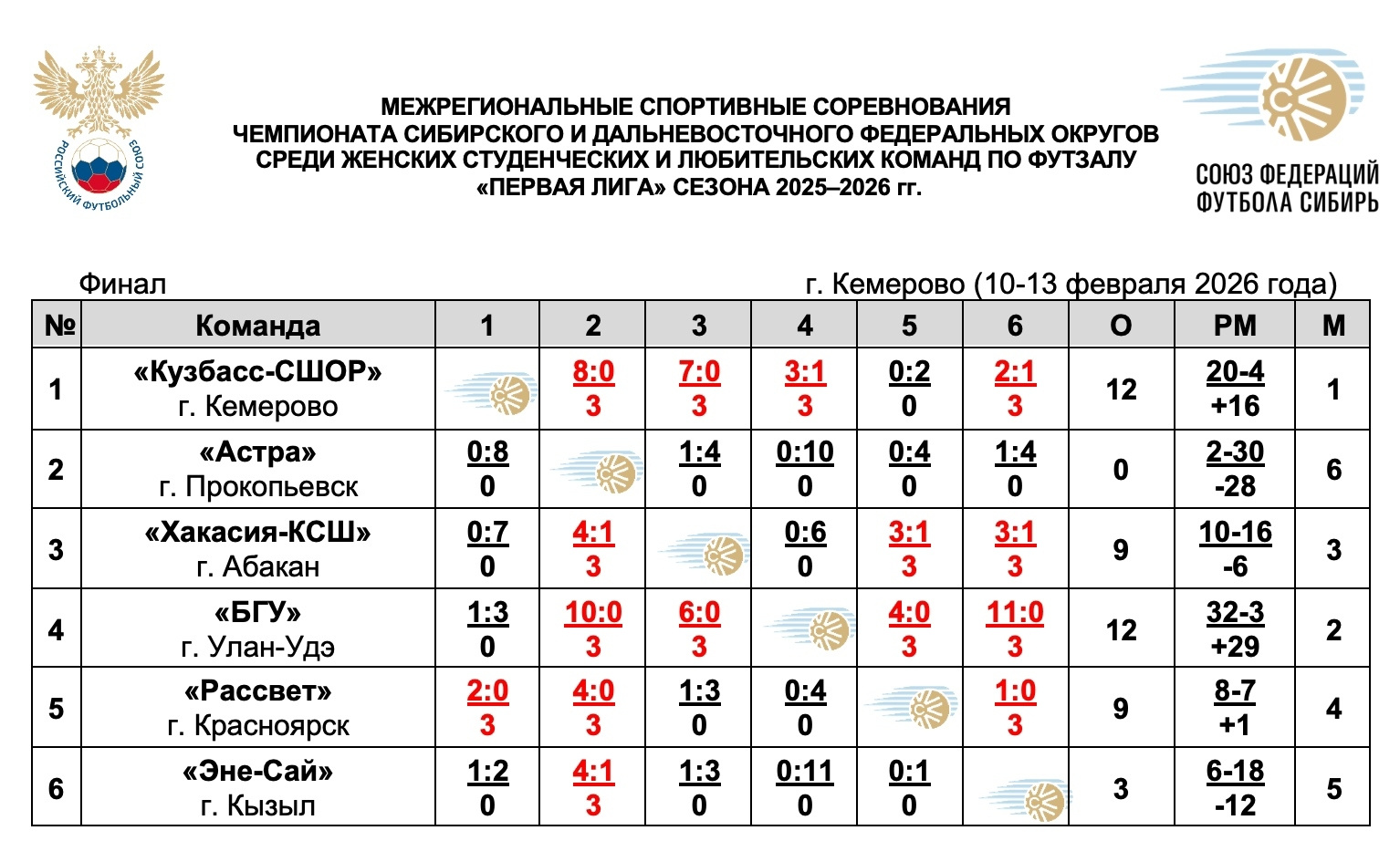 С 11 по 13 февраля в г. Кемерово на площадке Губернского центра спорта «Кузбасс» прошел Чемпионат СФО и ДВФО среди женских команд по футзалу «Первая лига».