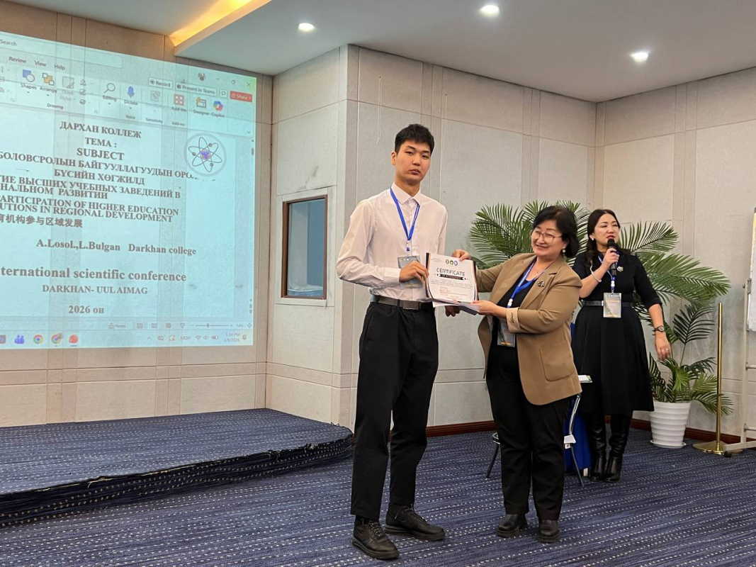 9 февраля 2026 года представители Бурятского государственного университета имени Доржи Банзарова приняли участие в Международной научно-теоретической и практической конференции «Роль университетов в региональном развитии», которая состоялась в городе Дархан (Монголия) на базе Дарханского колледжа.