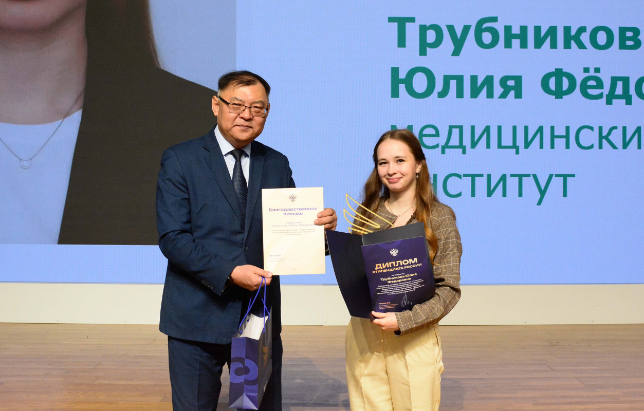 Алдар Валерьевич также сообщил важную новость: БГУ имени Доржи Банзарова вошел в пятерку лучших вузов Дальнего Востока по количеству стипендиатов. Этот результат был отмечен Благодарностью Министерства науки и высшего образования Российской Федерации, что подтверждает высокий уровень подготовки студентов в нашем университете.