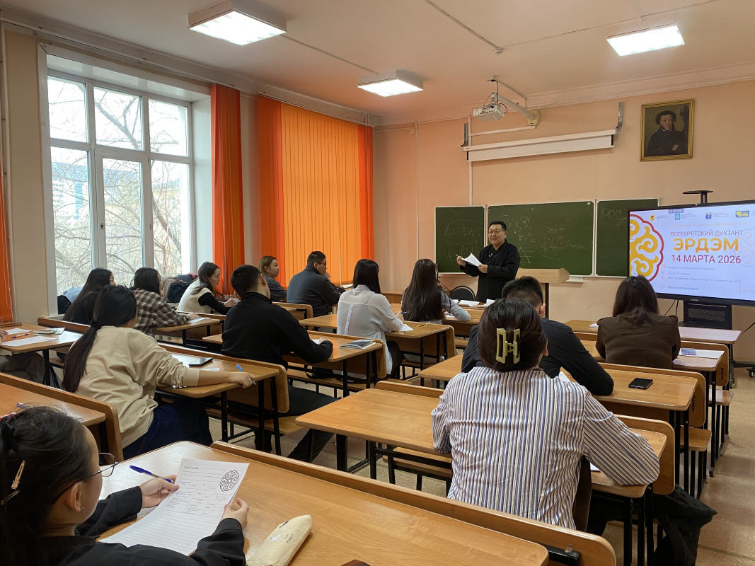 Одна из главных республиканских площадок проведения акции была организована 14 марта 2026 г. в стенах Бурятского государственного университета им. Д.Банзарова. В акции приняли участие студенты Высшей школы бурятского языка и литературы, а также других институтов БГУ в количестве 33 человек. Диктором диктанта выступил заведующий кафедрой бурятской и эвенкийской филологии, кандидат педагогических наук, доцент Сергей Гармаевич Ошоров.