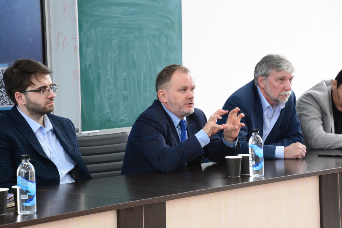 В преддверии запуска программы двойных дипломов по искусственному интеллекту проректор НИУ ВШЭ Сергей Рощин, декан факультета компьютерных наук ВШЭ Иван Аржанцев и начальник отдела сопровождения учебного процесса по онлайн-программам ВШЭ Виктор Муравлев познакомились с коллегами и обсудили планы по реализации совместной программы.