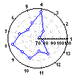 Пиктографики - Многоугольники. На пиктографике этого типа для каждого наблюдения рисуется свой многоугольник; относительные значения выбранных переменных выражаются расстояниями от центра пиктограммы до соответствующих углов многоугольника (по часовой стрелке, начиная с 12:00).