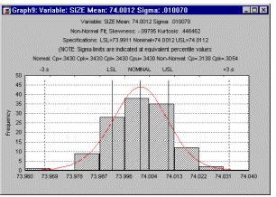 Только что рассмотренные показатели имеют смысл только тогда, когда измеряемые параметры качества действительно подчиняются нормальному распределению (показатели пригодности для распределений, отличных от нормального, будут введены ниже). Существуют специальные критерии для проверки предположения о нормальности (например, критерий Колмогорова-Смирнова или критерий хи-квадрат), которые описаны в большинстве учебников по статистике и подробно обсуждаются в разделе Непараметрическая статистика и подгонка распределений .