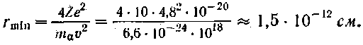 точно по направлению к ядру ot-частица подошла бы к его центру на расстояние, которое можно определить, приравняв кинетическую энергию ос-частицы потенциальной энергии взаимодействия ct-частицы с ядром в момент полной остановки частицы: