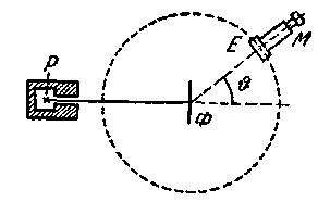 , покрытый сернистым цинком, и вызываемые ими сцинтилляции1) наблюдались в микроскоп М. Микроскоп и экран можно было вращать вокруг оси, проходящей через центр рассеивающей фольги, и устанавливать таким образом под любым углом О. Весь прибор