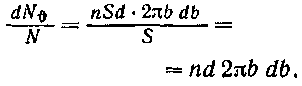 Обозначим площадь поперечного сечения пучка а-ча-стиц буквой S. Тогда количество атомов рассеивающей фольги на пути пучка можно представить в виде nSd, где п — число атомов в единице объема, a d — толщина фольги. Если а-частицы распределены равномерно по сечению пучка и число их очень велико (что имеет место на самом деле), то относительное количество а-ча-стиц, пролетающих вблизи одного из ядер по траектории с прицельным параметром от b до