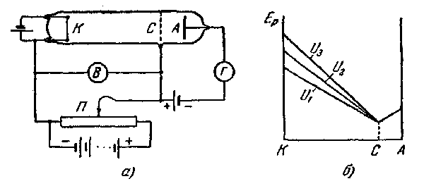 i и продолжают затем двигаться с меньшей скоростью. Поэтому число электронов, достигающих анода, уменьшается. Например, при