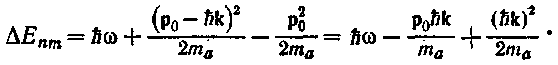 Изменение энергии поступательного движения атома мало по сравнению с энергией фотона Ью. Поэтому в первом приближении можно считать, что