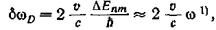 следует, что относительное допплеровское уширение линий бос/о не зависит от частоты и равно 2(v/c). Согласно (79.3)