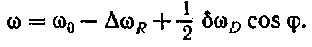[см. (79.11)]. Величина со0 представляет собой ту частоту, которую имел бы фотон при условии, что энергия Д£пт полностью пошла на излучение. Получение атомом при излучении энергии отдачи R привадит к смещению спектральной линии в сторону меньших частот (т. е. больших длин волн) на величину