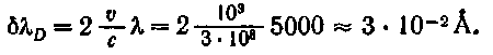 . Средняя скорость атомов (с атомным весом ~ 100) при температуре порядка нескольких тысяч градусов составляет приблизительно 103 м)сек. В этих условиях допплеровская ширина спектральной линии для К = 5000 А будет равна