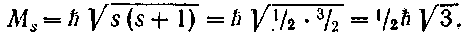 Величина собственного момента импульса электрона определяется по общим законам квантовой механики [см. формулу (69.4)] так называемым спиновым квантовым числом s? равным Vs1);