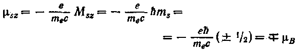 В ряд формул, в частности в выражение для энергии, входят не сами моменты, а их проекции. Поэтому принято говорить, что собственный механический момент (спин) электрона равен половине (подразумевается в единицах fi), а собственный магнитный момент равен одному магнетону Бора.