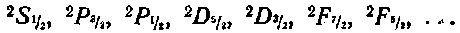 Итак, каждый ряд термов, кроме 5, распадается на два ряда — структура термов оказывается дублетной (двойной). Термы принято обозначать символами: