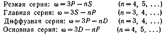 серий имеют, вообще говоря, разное значение. Так, например, спектральные серии натрия можно представить следующими формулами.
