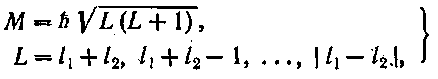 Момент импульса атома в целом слагается из моментов всех электронов, входящих в состав атома. Сложение моментов импульса осуществляется по квантовым "законам, согласно которым величина результирующего момента М определяется выражением: